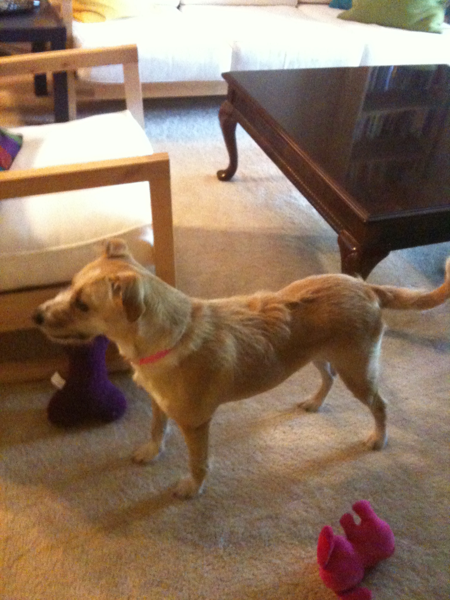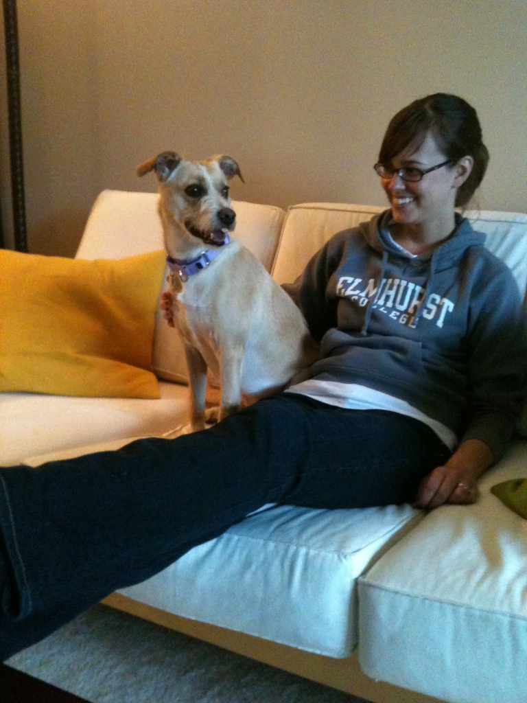 We took the night to “sleep on it,” which actually meant go to PetSmart and spend about a bajillion dollars on dog stuff, and picked her up on Saturday. So, everyone, meet Penelope Sam-Rob (yup, her last name is hyphenated 🙂 )! We call her Penny for short. Click on the images to enlarge.